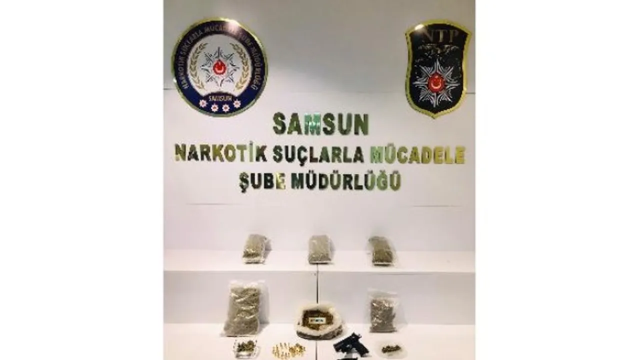 Edinilen bilgiye göre, Samsun Emniyet Müdürlüğü Narkotik Suçlarla Mücadele Şube Müdürlüğü ekipleri, Samsun Cumhuriyet Başsavcılığı koordinesinde uyuşturucu ile mücadele çerçevesinde yaptığı takip ve çalışmalar doğrultusunda Samsun il merkezinde irtibatlı oldukları şahıslara müşterek hareket ederek uyuşturucu madde satışı yaptıkları ve Canik ilçesi Hasköy Mahallesi'nde bulunan ikametlerinde yüklü miktarda uyuşturucu madde bulundurdukları istihbar edilen U.Ö. ve E.K. isimli şahıslara ait adrese operasyon düzenledi. Yapılan aramada, 8 paket halinde toplam 2 kilo 589 gram skunk maddesi, 1 adet 9 mm çapında ruhsatsız tabanca ve 42 adet 9 mm çapında tabanca fişeği ele geçirildi. U.Ö. gözaltına alındı. Firarda olan E.K.'nin yakalanmasına çalışılıyor.