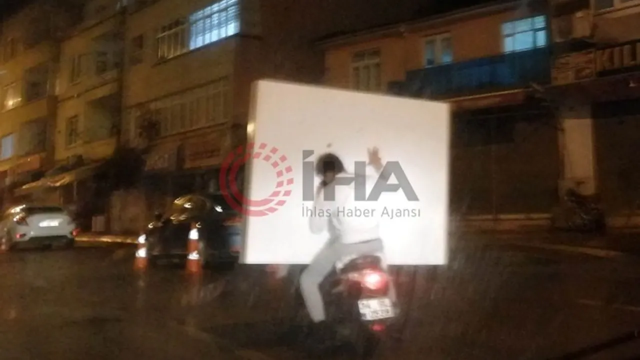 Olay, Samsun'un İlkadım ilçesi 2. Bulvar üzerinde meydana geldi. Cep telefonu kamerası ile çekilen görüntülerde trafiği tehlikeye düşüren ve kendi canlarını hiçe sayan 2 kişi görüntülendi. Motosiklet sürücüsü ve arkasındaki yolcu, yağmura aldırmadan aralarına aldıkları tahmini 3 metrekarelik plastik levhayı taşıyarak hem kendi hem de diğer sürücülerin canlarını tehlikeye attı. Rüzgarın da etkisiyle zaman zaman düşme tehlikesi yaşayan sürücü ve yolcu dakikalarca karayolunda araç geçişlerini engelleyerek tehlikeli bir şekilde yolculuk yaptı.
