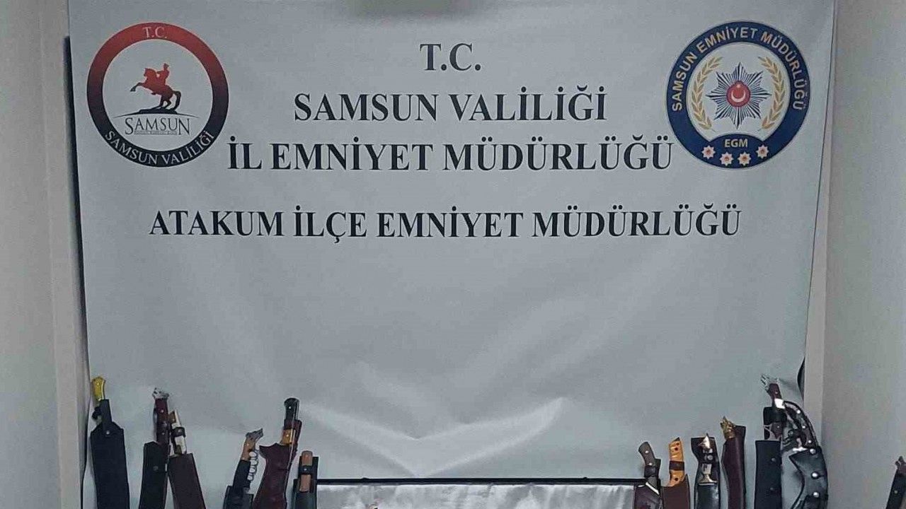 Edinilen bilgiye göre, Atakum İlçe Emniyet Müdürlüğü ekipleri, C.K.’ye (39) ait işyerine operasyon düzenledi. Yapılan aramada, 1 adet ruhsatsız tabanca, 499 adet tabanca fişeği, 1 adet ruhsatsız tüfek, 25 adet tüfek kartuşu, 54 adet nitelikli bıçak, 8 pala, 3 kılıç, 2 kelebek bıçak ve 1 sustalı bıçak ele geçirildi.