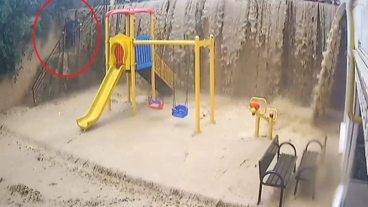 Sitenin çocuk parkının üzerinden aşan sel suyu ise olayın dehşetini gözler önüne serdi.