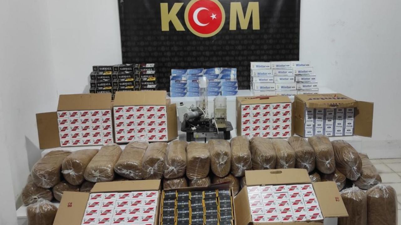 Belirlenen adreslerde yapılan aramada 176 bin 340 doldurulmuş makaron (filtreli sigara kağıdı), 229 bin 400 boş makaron, 332 kilogram kıyılmış tütün, 3 kilo 550 gram nargile tütünü, 20 sigara sarma makinesi, 215 TAPDK bandrolü, 50 elektronik sigara, 30 elektronik sigara likidi, 2 ruhsatsız tabanca, 600 fişek ve amaç dışı bıçak ele geçirildi.