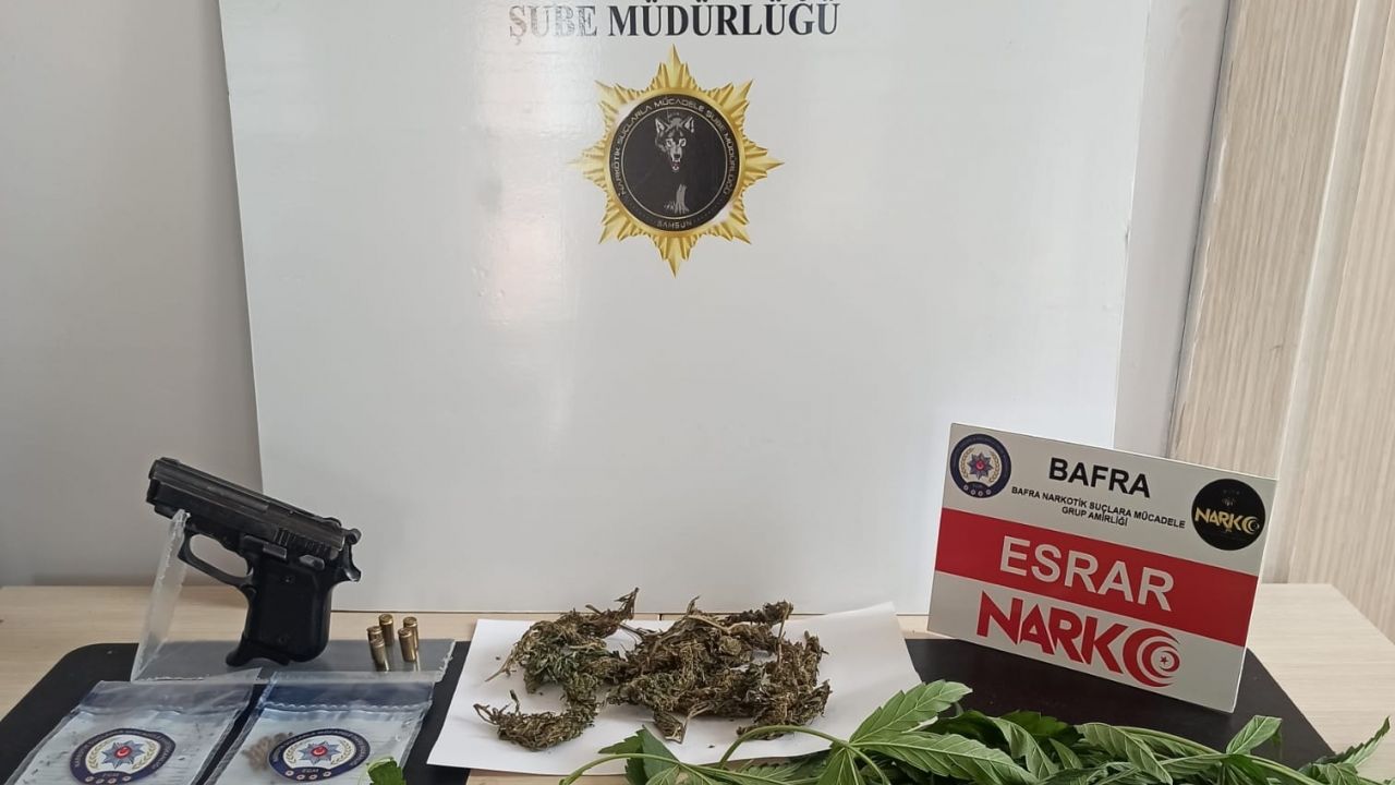 Bafra Cumhuriyet Başsavcılığı koordinesinde İlçe Narkotik Suçlarla Mücadele Grup Amirliği ekipleri, Kemal Paşa Mahallesi'nde O.S'nin (39) ikametinde arama yaptı.
