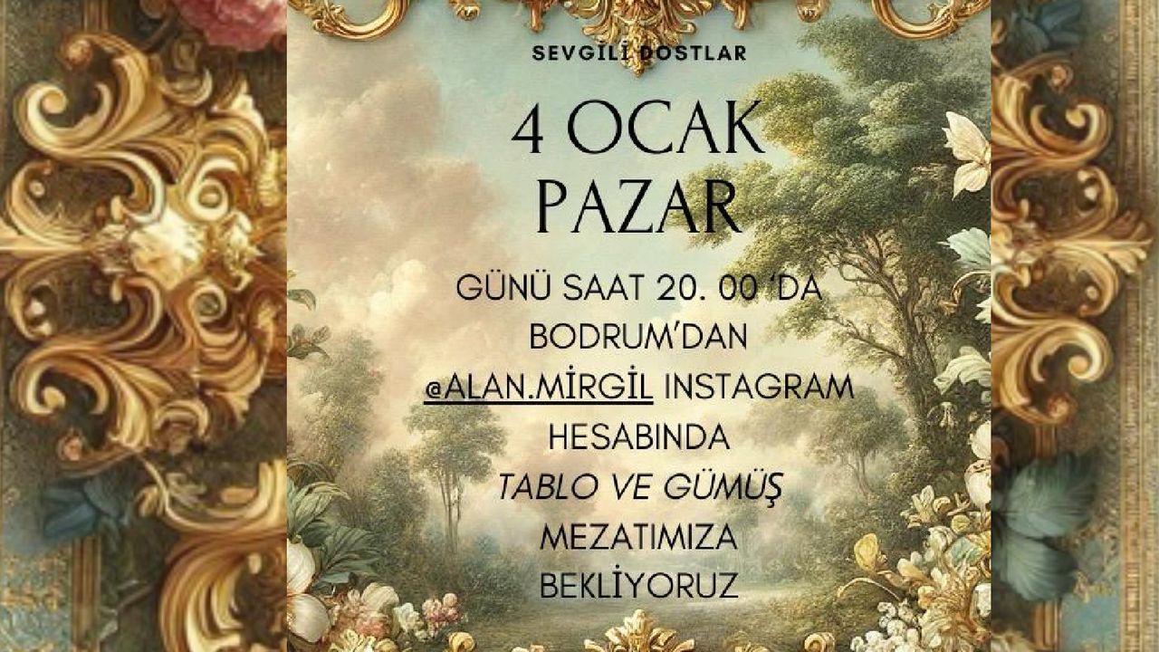 Etkinlik, 4 Ocak 2026 Pazar günü saat 20.00’de @ALAN.MİRGİL’e ait Instagram hesabı üzerinden canlı yayınla gerçekleştirilecek. Mezatta, çeşitli dönemlere ait tablolar ve gümüş objeler satışa sunulacak. Sanatseverler canlı yayına katılarak beğendikleri eserleri alabilecek.