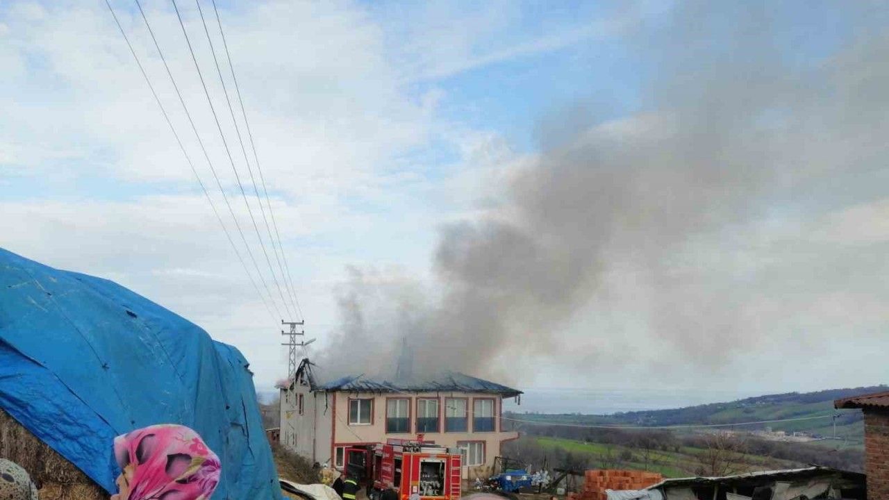 Sinop’ta 2 katlı evin çatısında çıkan yangında alevlere teslim oldu.