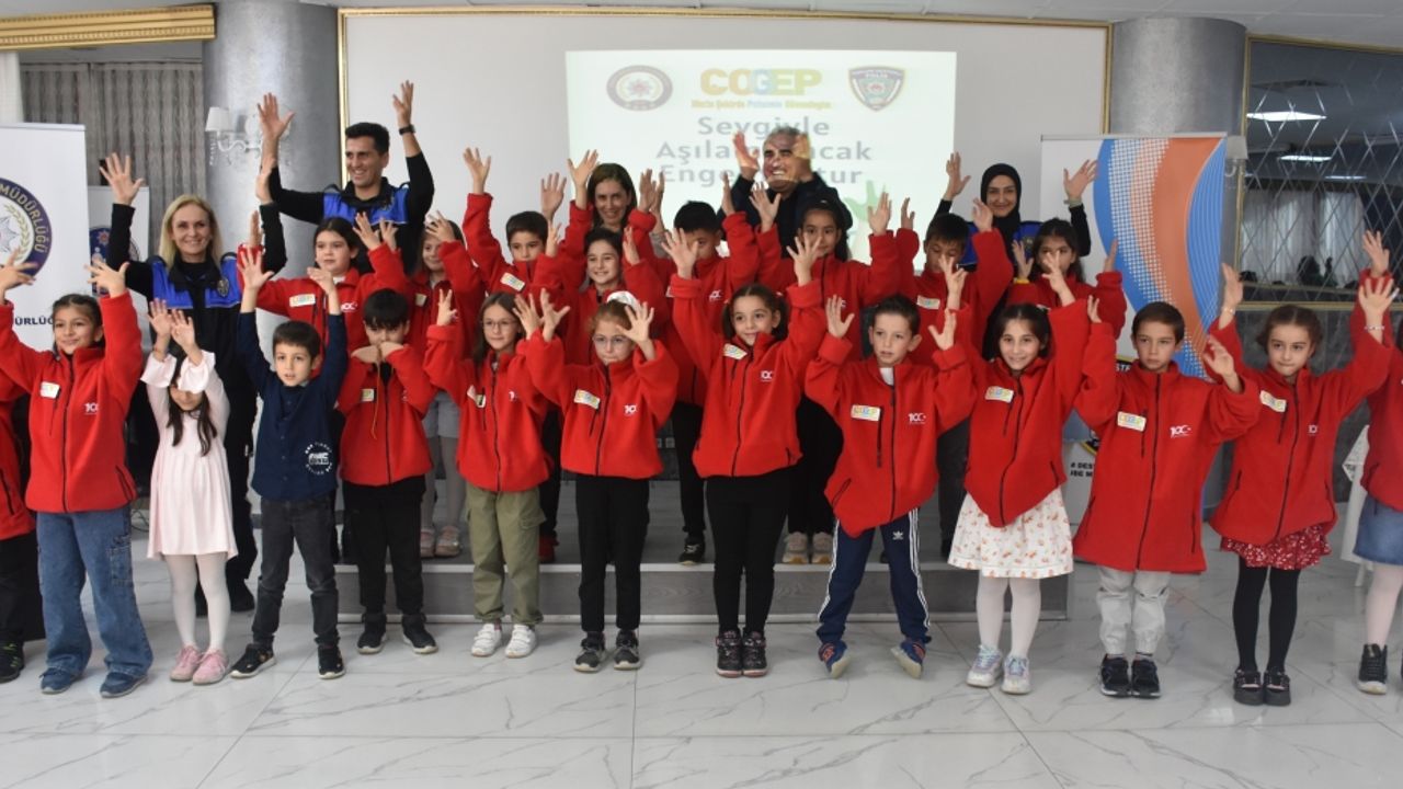 İl Emniyet Müdürlüğü Polisevi Salonu’ndaki etkinlikte, işaret dili eğitim alan 20 çocuk, engellilerle bir araya geldi.