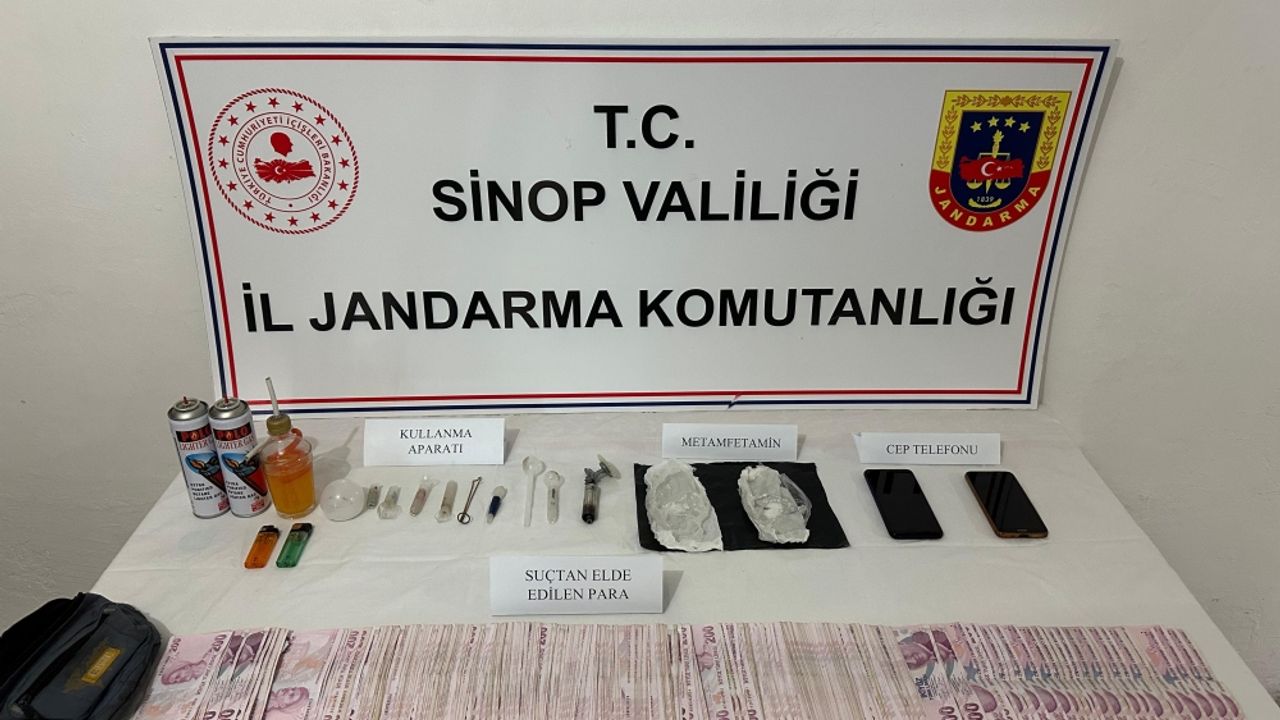 Zanlılara ait adreslerdeki aramada, 10 gram metamfetamin ve uyuşturucu kullanma aparatları ile suçtan temin edildiği değerlendirilen para ele geçirildi.