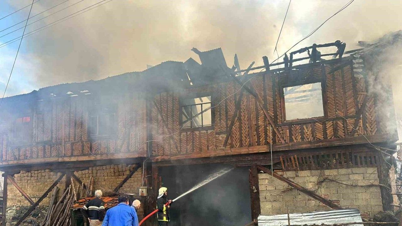 Yangında iki katlı ahşap ev tamamen yanarak kullanılamaz hale geldi. Jandarma ekipleri yangınla ilgili inceleme başlattı.