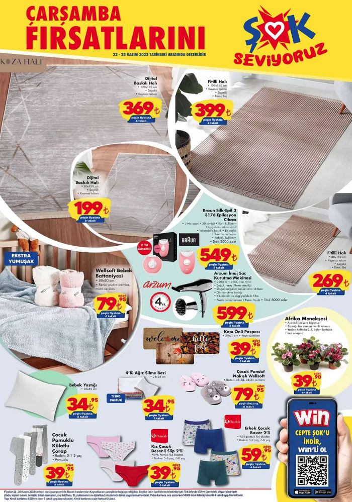 Kasım ayının ortalarıyla birlikte ŞOK, müşterileri için cazip indirimleri içeren yeni kataloğunu yayınladı. İşte 22 Kasım'dan itibaren geçerli olan ve müşterilerle buluşan bazı öne çıkan ürünler ve fiyatları:
