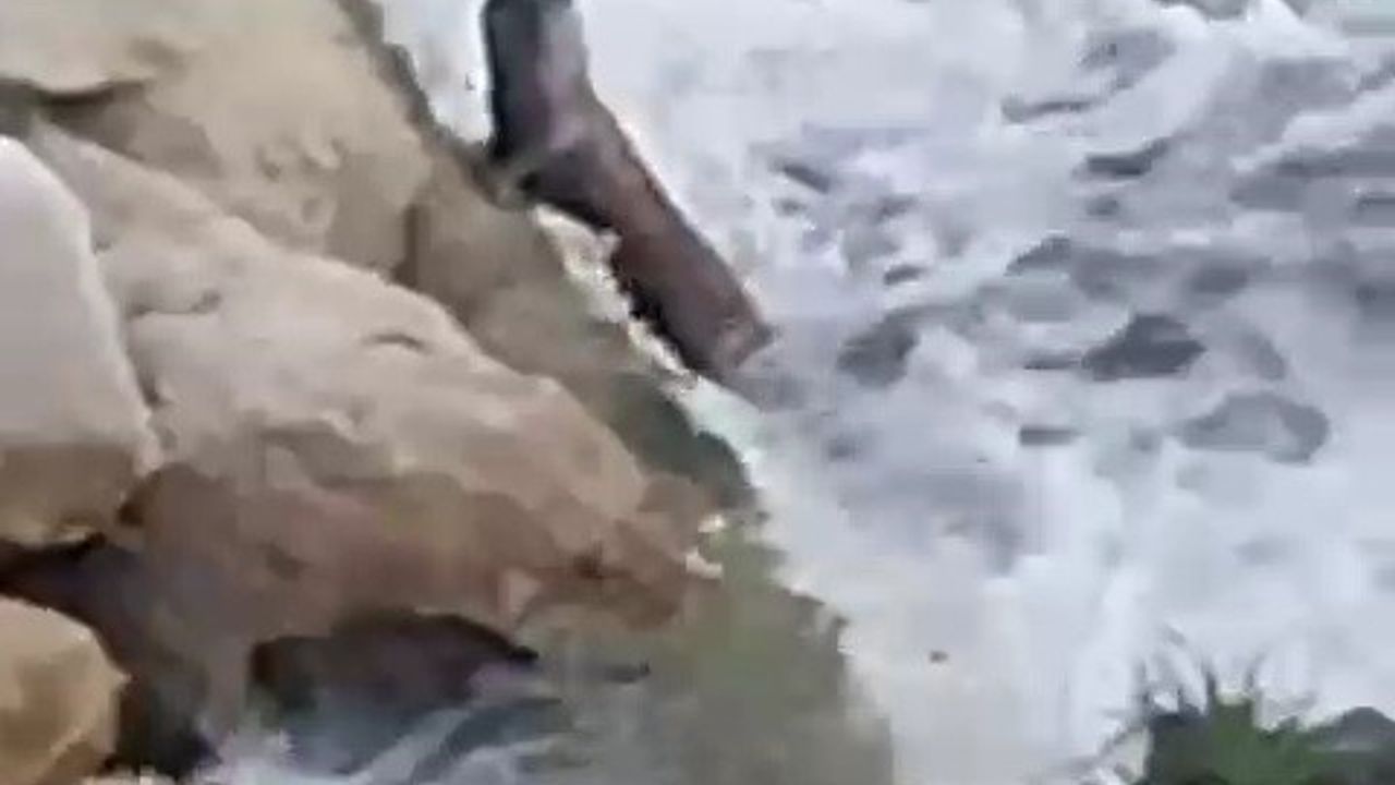 Taşın üzerinde dinlenen su samuru cep telefonu kamerasıyla görüntülendi.