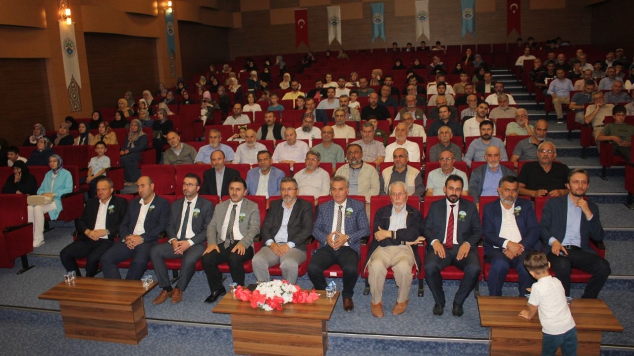 Konferans sonunda İlçe Milli Eğitim Müdürü Ahmet Davu ile İl Müftü Yardımcısı Harun Aydoğdu tarafından Şahin'e çiçek sunuldu.