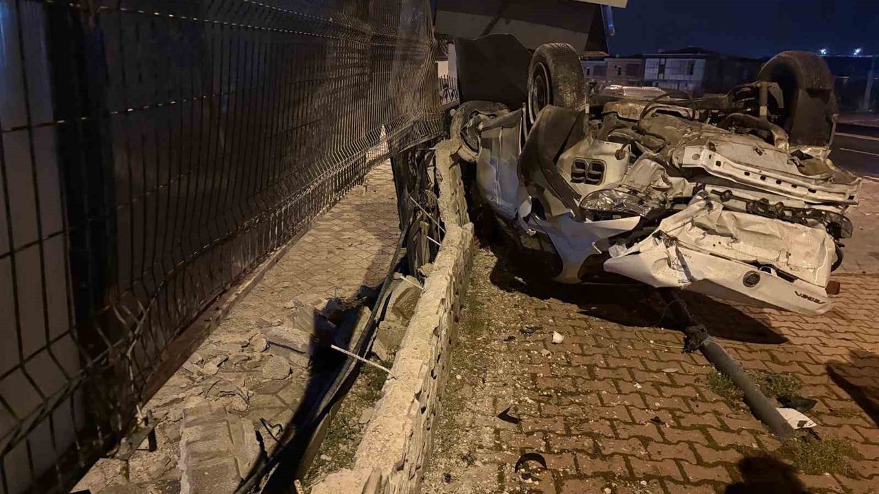 Kayseri'nin Melikgazi ilçesinde kontrolden çıkan otomobil takla atarak bir sitenin girişine daldı. Kazada sitenin duvarı ve girişindeki beton blok zarar görürken, sürücü yaralandı.