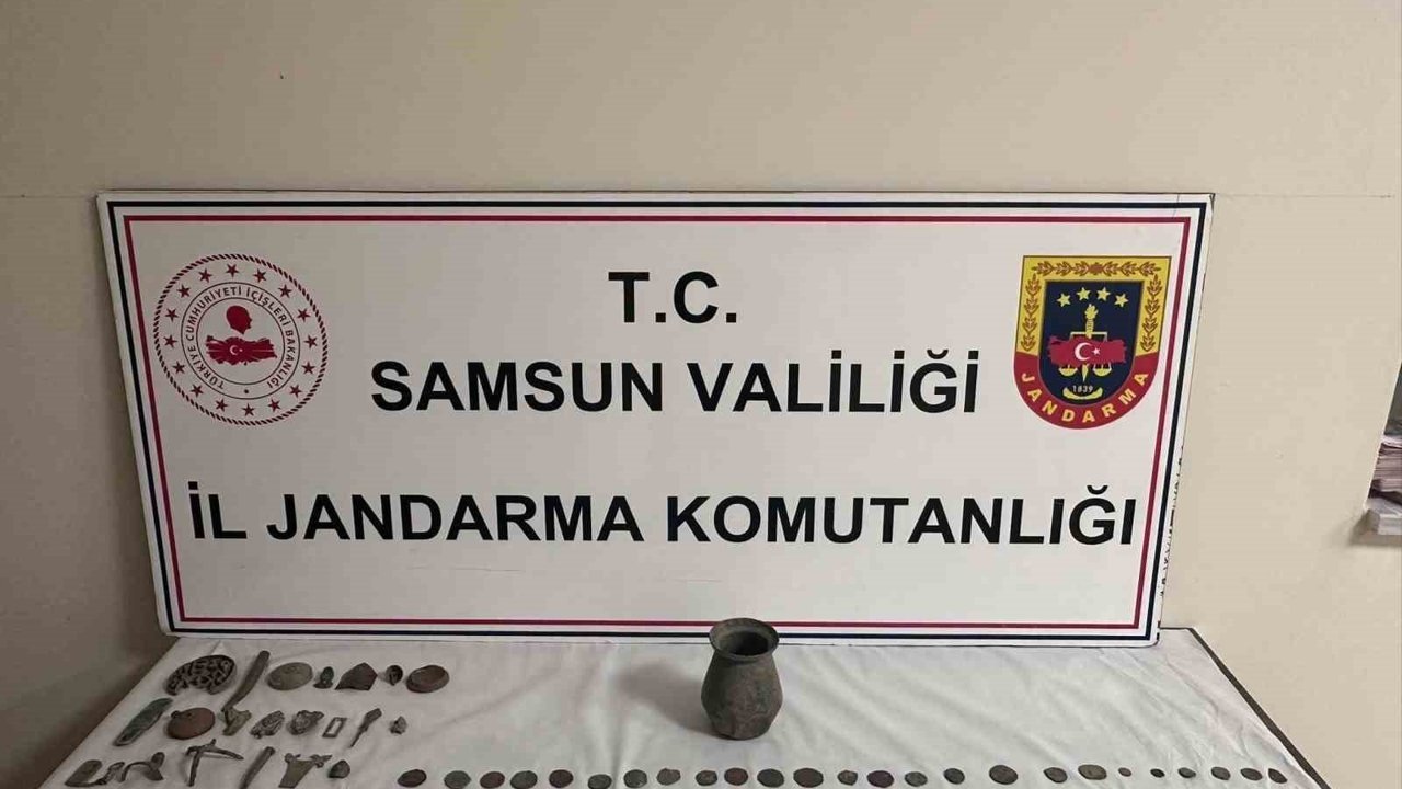Samsun İl Jandarma Komutanlığı ekipleri tarafından kaçakçılık olaylarının önlenmesine yönelik yürütülen çalışmalar kapsamında, 2 şahsın tarihi eser niteliği taşıyan objeleri satmak üzere Samsun'a gelecekleri bilgisine ulaşıldı. Elde edilen istihbarat üzerine harekete geçen ekipler, şüphelilerin bulunduğu aracı durdurarak arama gerçekleştirdi.
