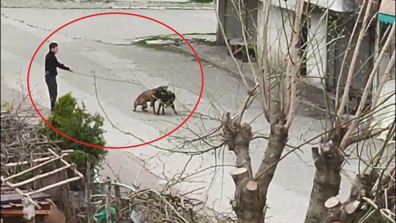 Öte yandan cep telefonu ile kaydedilen görüntülerde bir şahsın tasmasından tuttuğu köpeğini diğer sokak köpeklerinin üzerine saldığını ve köpeklerin ilk önce bir süre havladığı, sonrasında ise kavga ettikleri anlar yer aldı.