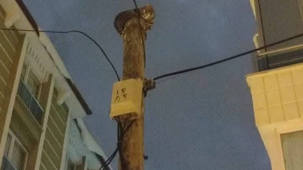 Aksaray’ın Ortaköy ilçesinde çıktığı telefon direğinde mahsur kalan kediyi elektrik arıza ekipleri kurtardı.