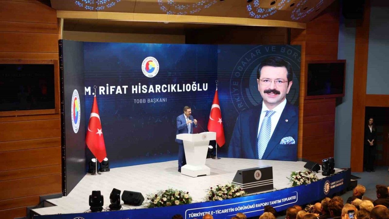 Burada konuşan Hisarcıklıoğlu, küresel belirsizliklerin, dalgalanmaların ve çatışmaların gündemin ilk sıralarında olduğu bir dönemde olmalarına rağmen, 2024 yılı ihracat verileri, Türkiye’nin üretim ve girişimcilik kapasitesinin bir kez daha tescillendiği bir tabloyu gösterdiğini dile getirdi. Hisarcıklıoğlu, iş dünyasının özellikle de KOBİ’lerin rekabet gücünü koruyabilmesi için dijitalleşmeye ayak uydurması gerektiğinin altını çizerek, "E-ticaret, bu dönüşümün en önemli taşıyıcısıdır. Eskiden bir ürün satmak için iyi bir mekân bulup dükkân açmak yeterliydi. Şimdi ise cep telefonlarının ekranı en değerli vitrin haline geldi. Bugün e-ticaret sayesinde, Anadolu’nun bir köyündeki üreticimiz dünyanın dört bir yanına malını satabiliyor. Bu imkânı doğru kullanan işletmeler, sınırları aşan bir başarı hikâyesi yazıyor. Bu doğrultuda e-ticaretin pay devamlı artıyor. Bugün kamuoyuyla paylaşılan ve Bakanlığımız tarafından hazırlanan sektör raporu da, e-ticaretin dinamiklerini anlamamız açısından çok önemli bir çalışma. Söz konusu rapor yalnızca içeriğiyle değil, aynı zamanda kapsamıyla da çok kıymetli bir çalışmadır" açıklamasında bulundu.