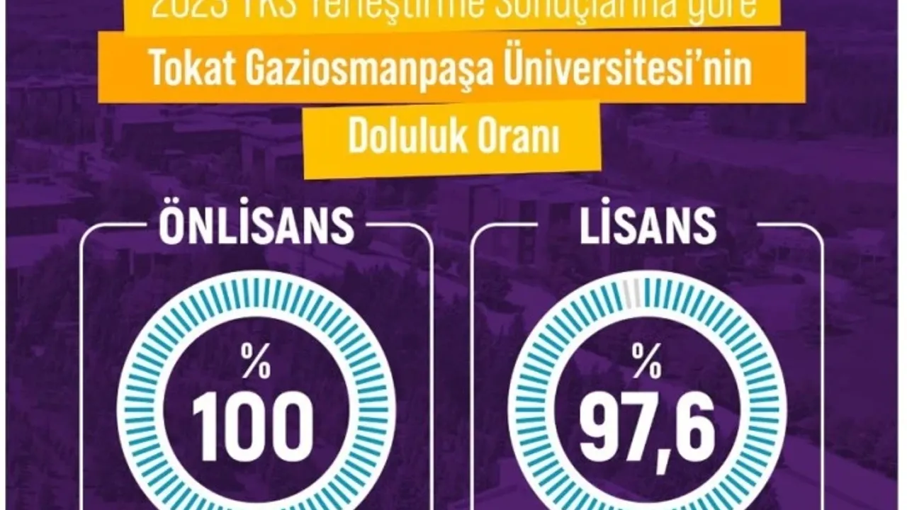 Tokat Gaziosmanpaşa Üniversitesi Yükseköğretim Kurumları Sınavı (YKS) 2023 tercih sonuçlarına göre lisans programlarında yüzde 97,6 ön lisans programlarında yüzde 100 doluluk oranına ulaştı.