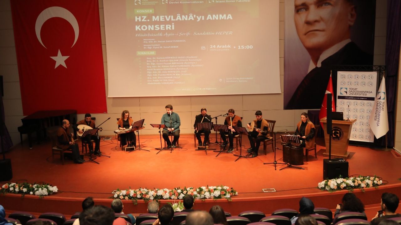 Tokat Gaziosmanpaşa Üniversitesi (TOGÜ) bünyesindeki Devlet Konservatuvarı ile İslami İlimler Fakültesi, Hz. Mevlânâ Celaleddin-i Rûmî'yi anmak için özel bir etkinliğe imza attı. İki farklı disiplinini buluşturan "Hz. Mevlânâ'yı Anma Konseri", 24 Aralık Çarşamba günü Şehit Ömer Halisdemir Konferans Salonu'nda sanatseverlerle buluştu.