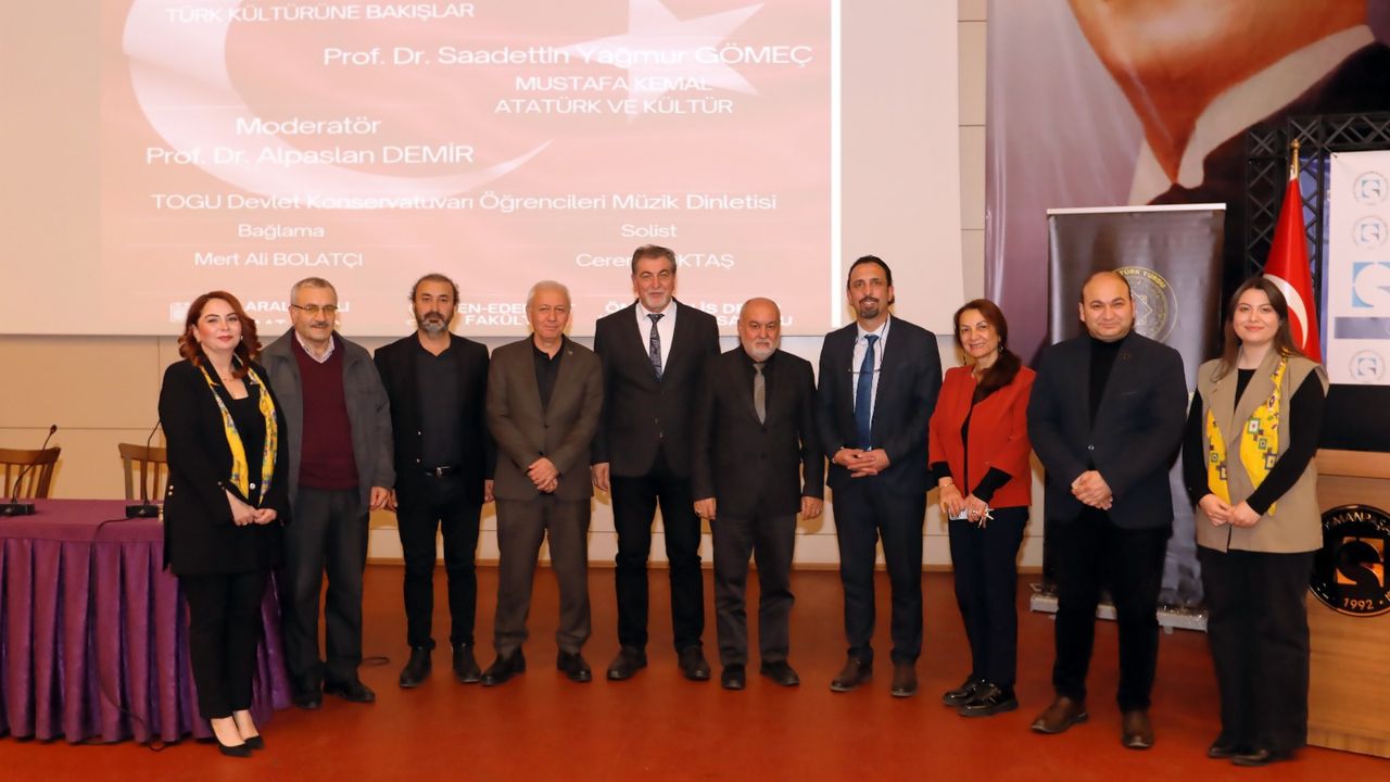 Panele TOGÜ Genel Sekreteri Prof. Dr. Muhittin Demiray, çeşitli fakültelerin dekanları, akademik-idari personel ve öğrenciler katıldı. Moderatörlüğünü Prof. Dr. Alpaslan Demir’in yaptığı panelin ilk konuşmacısı Prof. Dr. Üçler Bulduk oldu. Bulduk, “Türk Kültürüne Bakışlar” başlıklı sunumuyla kültürümüzün derinliklerine ışık tuttu. Ardından Prof. Dr. Saadettin Yağmur Gömeç, “Mustafa Kemal Atatürk ve Kültür” başlıklı sunumunu gerçekleştirerek, Atatürk’ün kültüre bakışını ve kültür politikalarını katılımcılarla paylaştı.