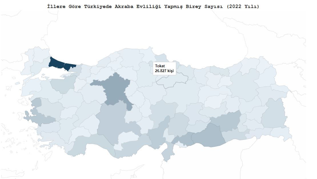 Ayrıca, Tokat ilinde akraba evliliği yapan kişi sayısı Sivas'ı geride bırakarak 26.827 kişi oldu, Sivas'ta ise 25.141 kişi akraba evliliği yapmış durumda.