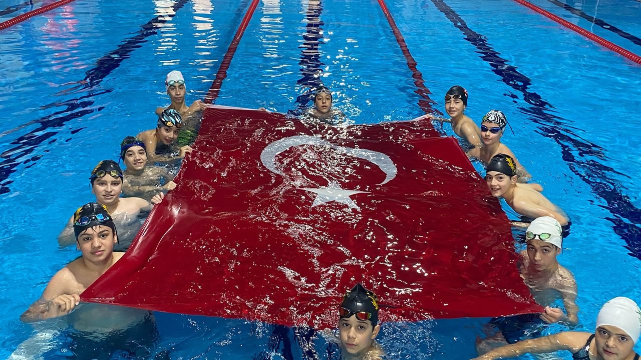 Tokat Alfa Spor Kulübü, Türkiye Cumhuriyeti'nin kuruluşunun 102. yıl dönümünü unutulmaz bir görüntüyle kutladı. Kulübün yüzme branşındaki sporcuları, havuzda bir araya gelerek dev bir Türk Bayrağı açtı. Bu anlamlı ve renkli kutlama, kulübün sosyal medya hesaplarından "Cumhuriyet Bayramımız kutlu olsun!" mesajıyla paylaşılarak büyük beğeni topladı.
