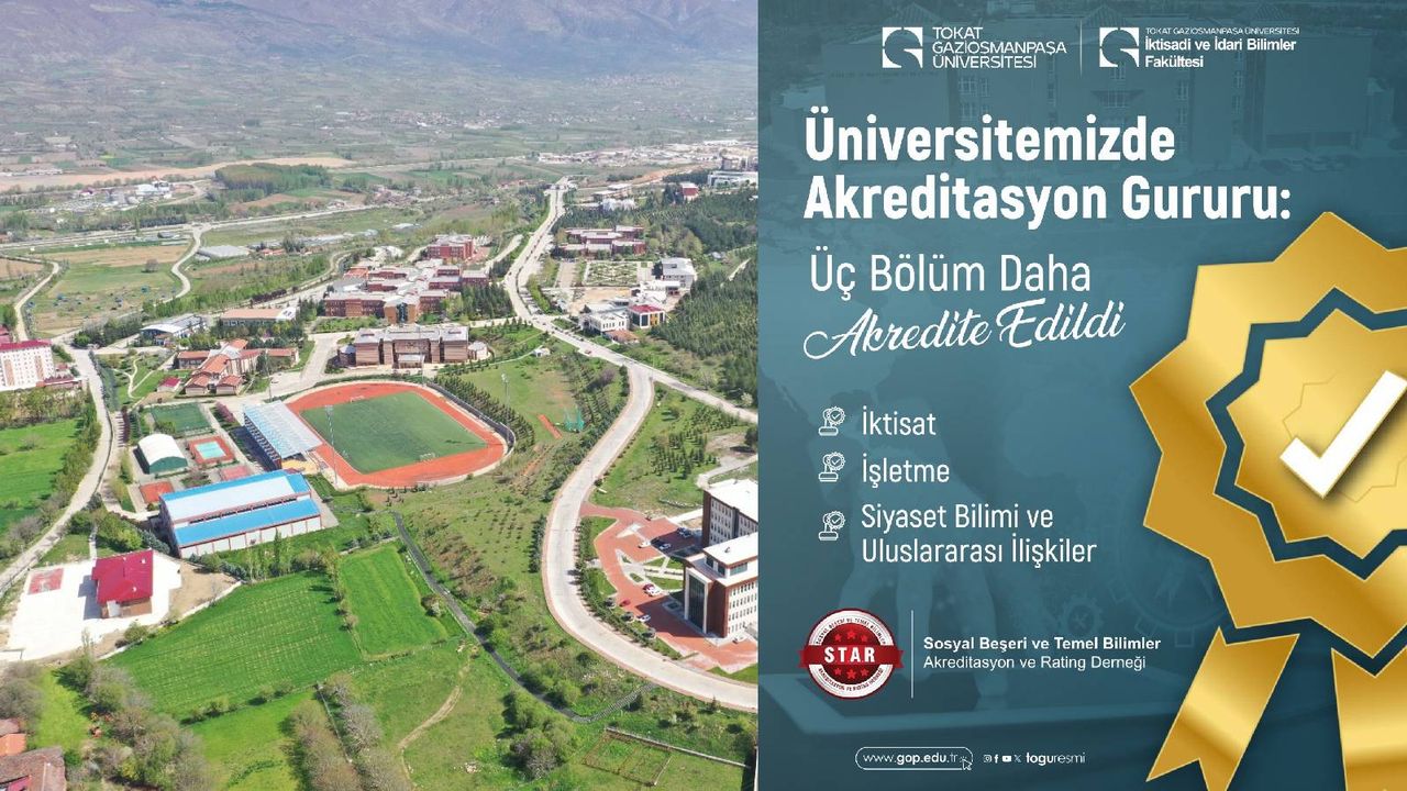 Sosyal Beşeri ve Temel Bilimler Akreditasyon ve Rating Derneği (STAR) tarafından gerçekleştirilen değerlendirme sonucunda, İktisat, İşletme ile Siyaset Bilimi ve Uluslararası İlişkiler bölümleri akreditasyon almaya hak kazandı. Tokat Gaziosmanpaşa Üniversitesi Rektörü Prof. Dr. Fatih Yılmaz, üniversitenin akreditasyon sürecine verdiği önemi vurgulayarak, "Akreditasyon, sadece bir belge değil, akademik kalitenin ve eğitim standartlarının uluslararası ölçekte kabul gördüğünün bir kanıtıdır. Daha önce Tarih, Rehberlik ve Psikolojik Danışmanlık, Gıda Mühendisliği bölümleri ile Elektronik Teknolojisi programımız akredite edilmişti. Şimdi üç yeni bölümün daha akreditasyon almasıyla bu alanda çok önemli bir aşama kaydettik" dedi.