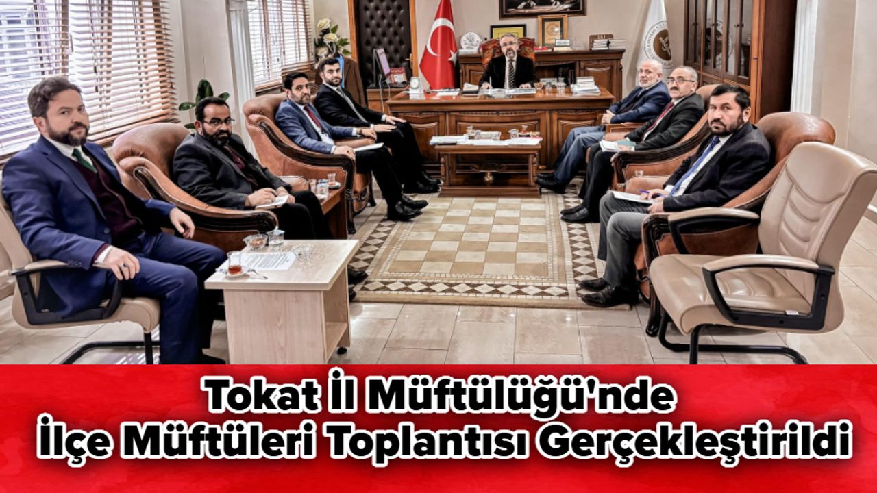 Tokat İl Müftülüğü ve İlçe Müftülükleri arasındaki koordinasyonu sağlamak, yürütülen hizmetler hakkında fikir alışverişinde bulunmak ve din hizmetlerinin etkinliğini artırmak amacıyla düzenli olarak yapılan "İlçe Müftüleri Toplantısı," Tokat İl Müftülüğü’nün ev sahipliğinde gerçekleştirildi. Toplantıya Tokat İl Müftüsü Esat Yapıcı başkanlık etti. Toplantıda cami ve Kur’an kursu hizmetlerinin kalitesini artırmaya yönelik çalışmalar, cami dışı din hizmetlerinin yaygınlaştırılması ve din hizmetlerinde hayata geçirilecek faaliyetler ele alındı.
