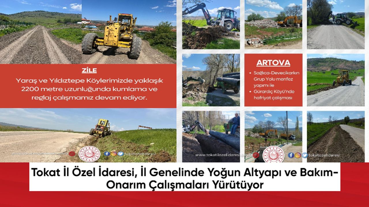 Tokat İl Özel İdaresi, il genelinde vatandaşların yaşam kalitesini artırmak amacıyla altyapı, bakım ve onarım çalışmalarını aralıksız sürdürüyor. Ekipler, ilçe ve köylerde birçok projeyi aynı anda hayata geçirerek hizmet seferberliği başlattı.