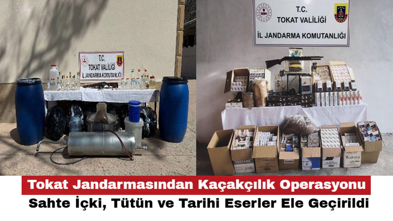 Tokat İl Jandarma Komutanlığı tarafından son bir aylık dönemde kaçakçılık faaliyetlerine yönelik düzenlenen operasyonlarda önemli miktarda sahte alkol, tütün, silah ve tarihi eser ele geçirildi. Operasyonlarda 27 şüpheli hakkında adli işlem başlatıldı.