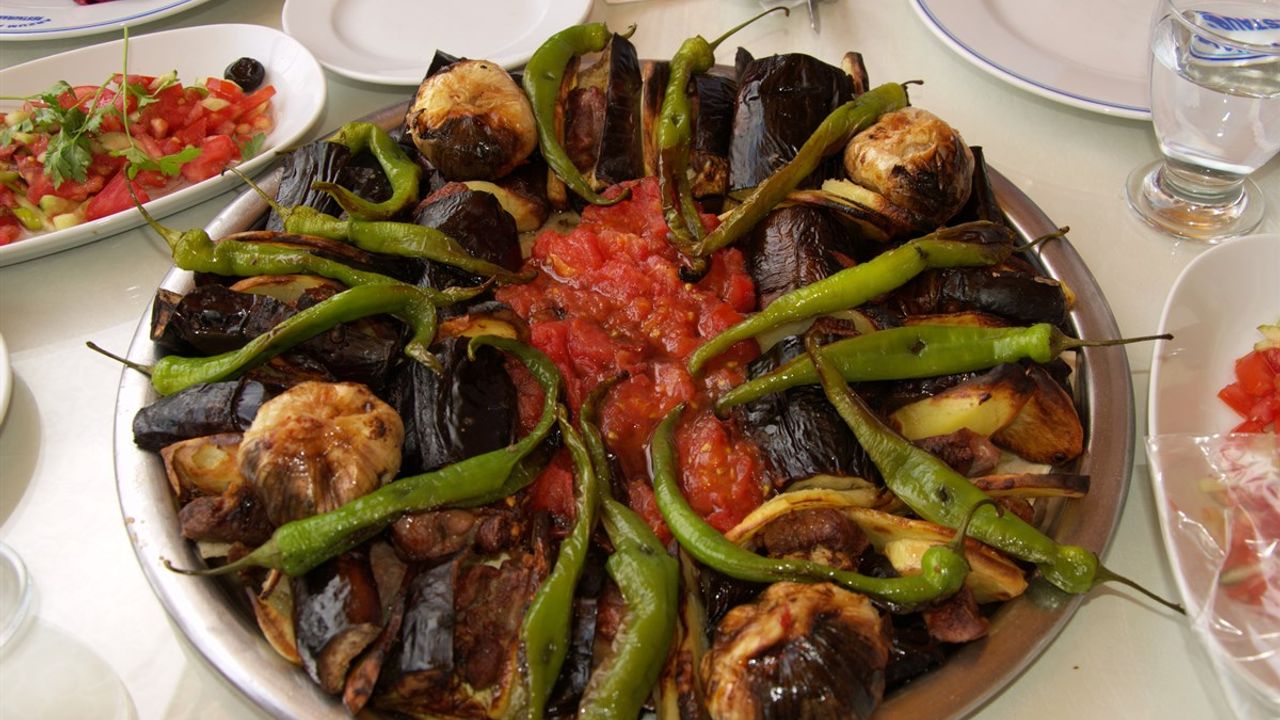 • Şişlerin alt kısmına konan tavalara dizilen dilimlenmiş domates üstüne akan yağlı et suları ile tatlanır.