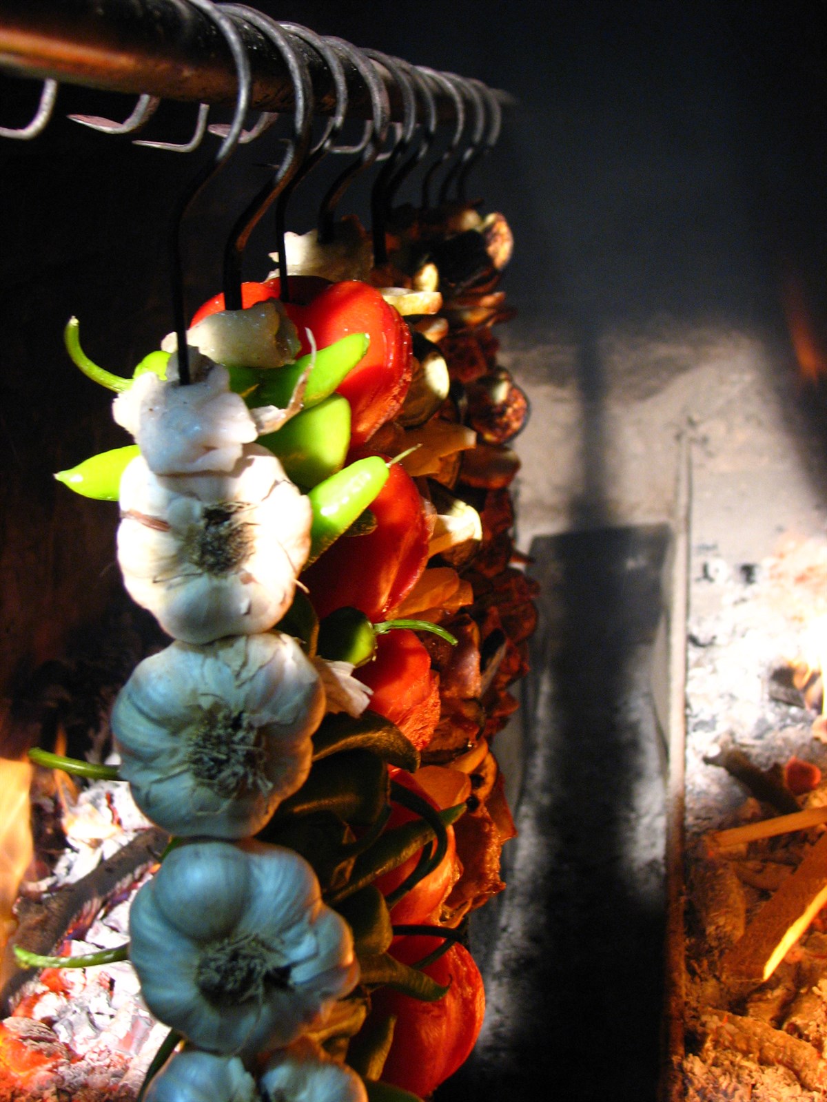 • Şişlerin tepesine takılan kuyruk yağı eriyerek sebzenin üstüne akarak iyi yandan yanan ateşle kızarmasını sağlanır