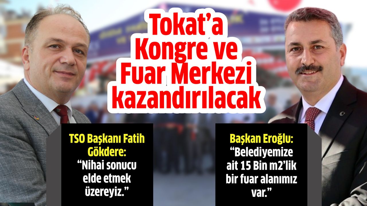 Tokat Belediye Başkanı Eyüp Eroğlu ile Tokat Ticaret ve Sanayi Odası Başkanı Fatih Gökdere, önceki gün katılmış oldukları 11. Tokat Gıda, Tarım, Hayvancılık ve Yöresel Ürünler Fuarı’nda yaptıkları konuşmalarda Tokat’a modern bir fuar alanı kazandırmaktan bahsettiler.