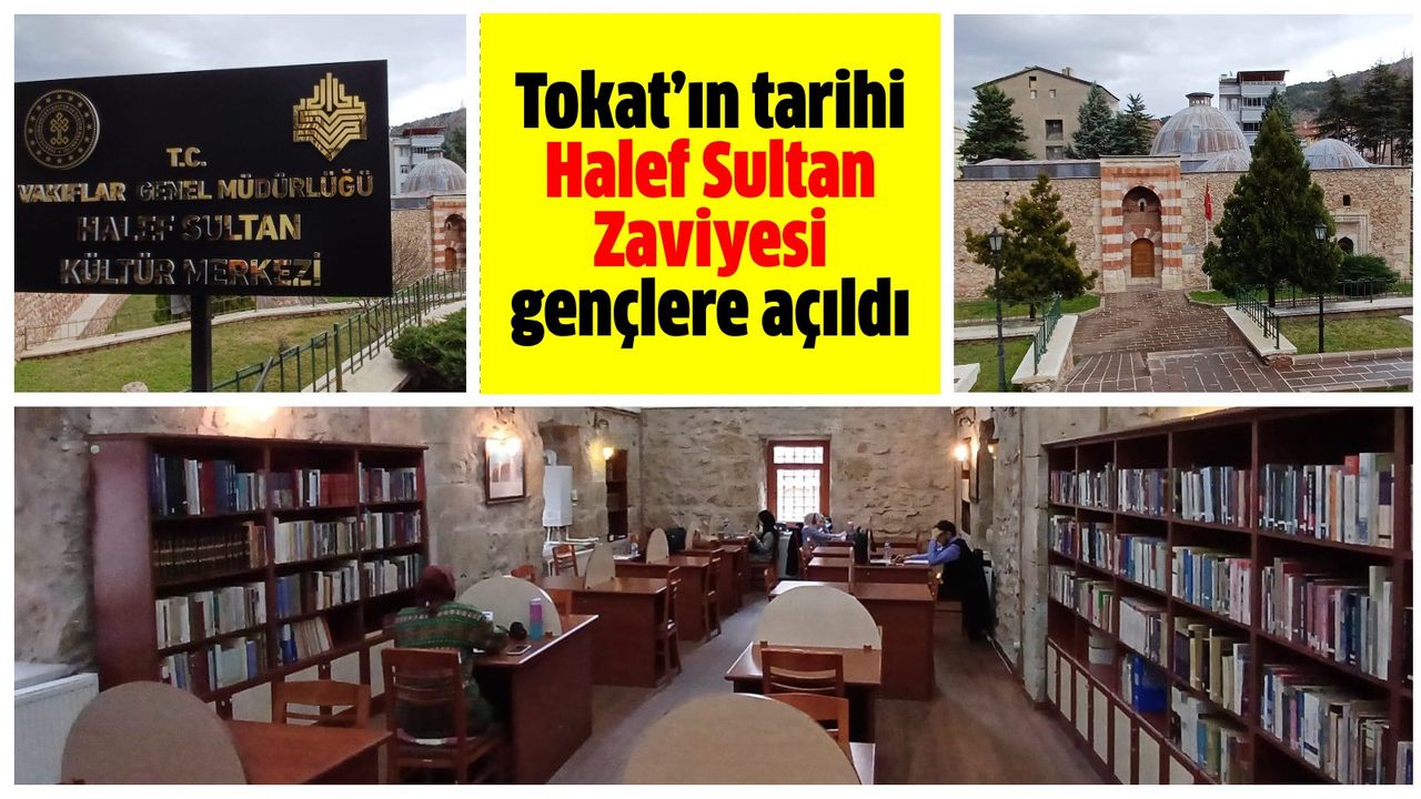 Tokat Emniyet Müdürlüğü hizmet binası arka tarafındaki Tokat Vakıflar Bölge Müdürlüğü Halef Sultan Kültür Merkezi, pazar günü hariç haftanın 6 günü saat 08.30 ile 22.00 arasında gençlerin kitap okuyabilecekleri, ders çalışabilecekleri, sosyal aktivitede bulanacakları tarihi mekanlar arasına girdi.
