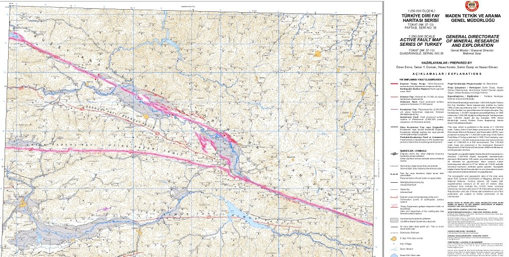 MTA Genel Müdürlüğü tarafından 1992 yılında yayımlanmış olan "Türkiye Diri Fay Haritası" 6 yıllık çalışmanın ardından yenilendi. Dün Erbaa'da yaşanan 3 ve üzeri şiddetindeki depremlerin sonrasında vatandaşlar Tokat ve ilçelerindeki diri fay hatlarının nerelerde yer aldığını merak eder oldu.