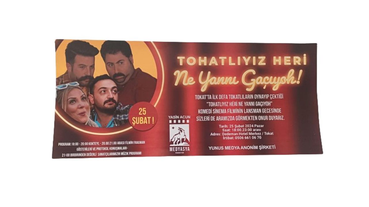 Yapımcı Yunus Aybakan, senarist Mehmet Emin Ulu, yönetmen Yasin Acu öncülüğünde "Tokatlıyız Heri Neyannu Gaçıyoh" komedi sinema filmi 20 Eylül 2023 tarihinde çekimleri başlamıştı. Yaklaşık 3 ay süren ve şehirde ilk defa Tokatlıların oynayıp çektiği "Tokatlıyız Heri Neyannu Gaçıyoh" komedi sinema filminin lansmanı 25 Şubat Pazar günü Dedeman Otel’de gerçekleşecek. Merkez ve ilçelerde yapılan komedi sinema filminin lansmanı saat 18.00’da başlayıp 23.00’da bitmesi planlanıyor.