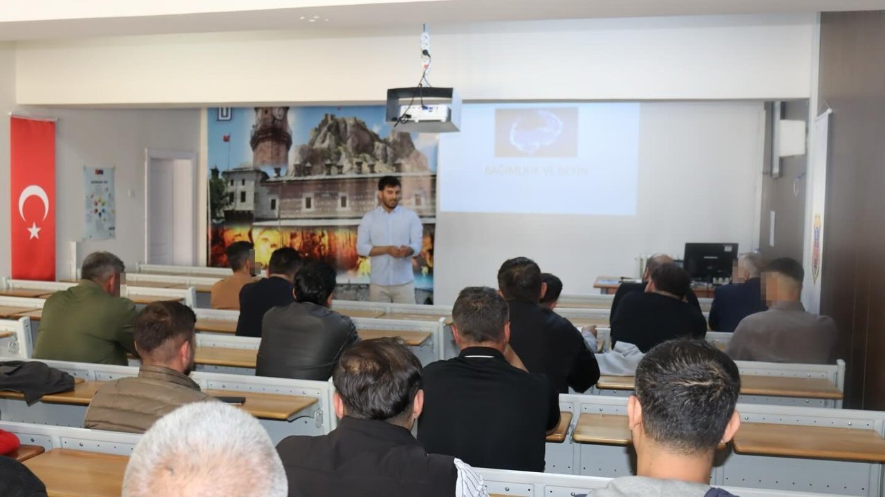 "Madde Kullanma Riski ve Madde Bağımlılığından Korunma" başlığı altında sunulan eğitimde, bağımlılığın yalnızca fiziksel bir düşkünlük olmadığı, aynı zamanda karmaşık bir psikolojik ve sosyal problem olduğu vurgulandı. Dr. Burak Şirin, madde kullanımına iten çevresel faktörlerden stres yönetimine, bağımlılığın beyin yapısı üzerindeki tahribatından tedavi süreçlerine kadar geniş bir yelpazede bilgilendirme yaptı. Görsel materyaller ve slaytlarla desteklenen sunumda, yükümlülerin madde deneme riskini artıran unsurlara karşı nasıl direnç gösterebilecekleri interaktif bir yöntemle ele alındı.