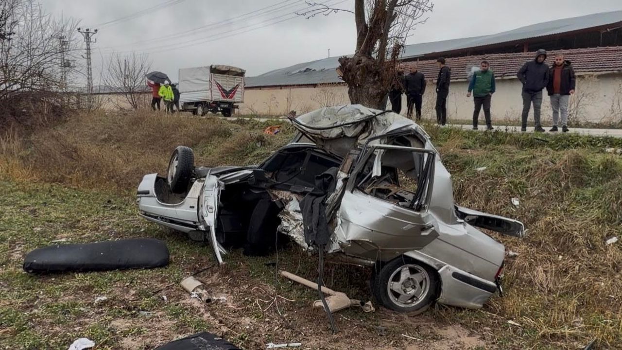 Tokat'ın Zile ilçesinde, sürücüsünün direksiyon hakimiyetini kaybettiği otomobil kontrolünden çıkarak yol kenarındaki ağaca çarpması sonucu ikiye bölündü.