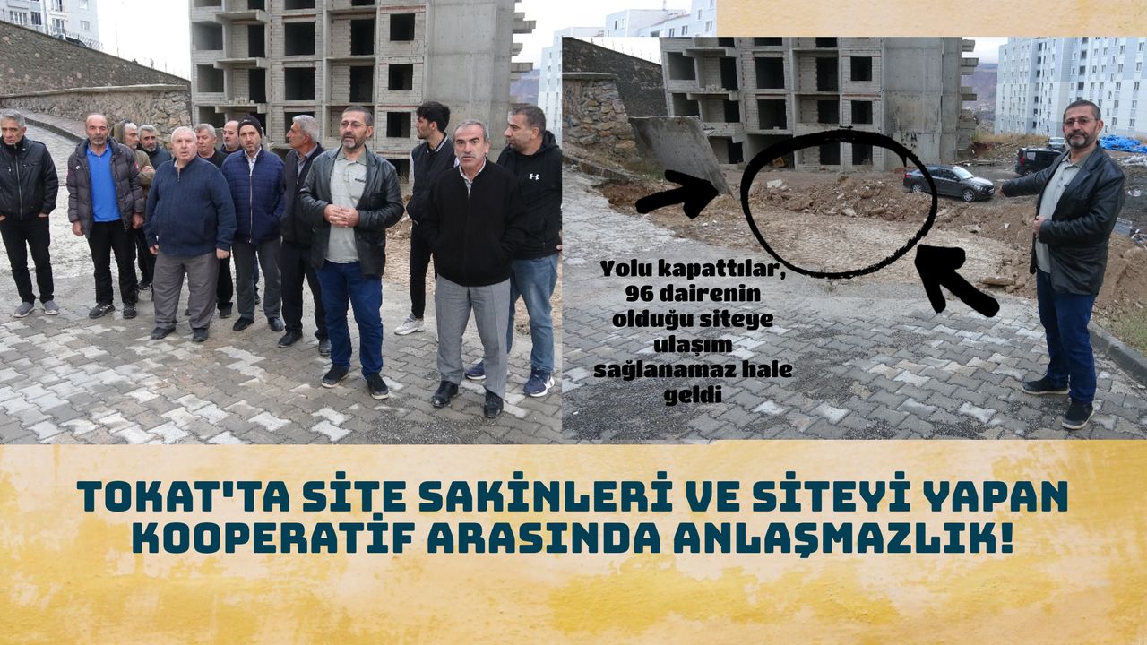 TOKAT (İHA) - Tokat'ta site sakinleri ve siteyi yapan kooperatif arasında ki anlaşmazlık yüzünden yol ulaşıma kapatıldı. İçerisinde 96 dairenin bulunduğu sitede yaşayanlar ulaşım güçlüğü çektiklerini belirtti.