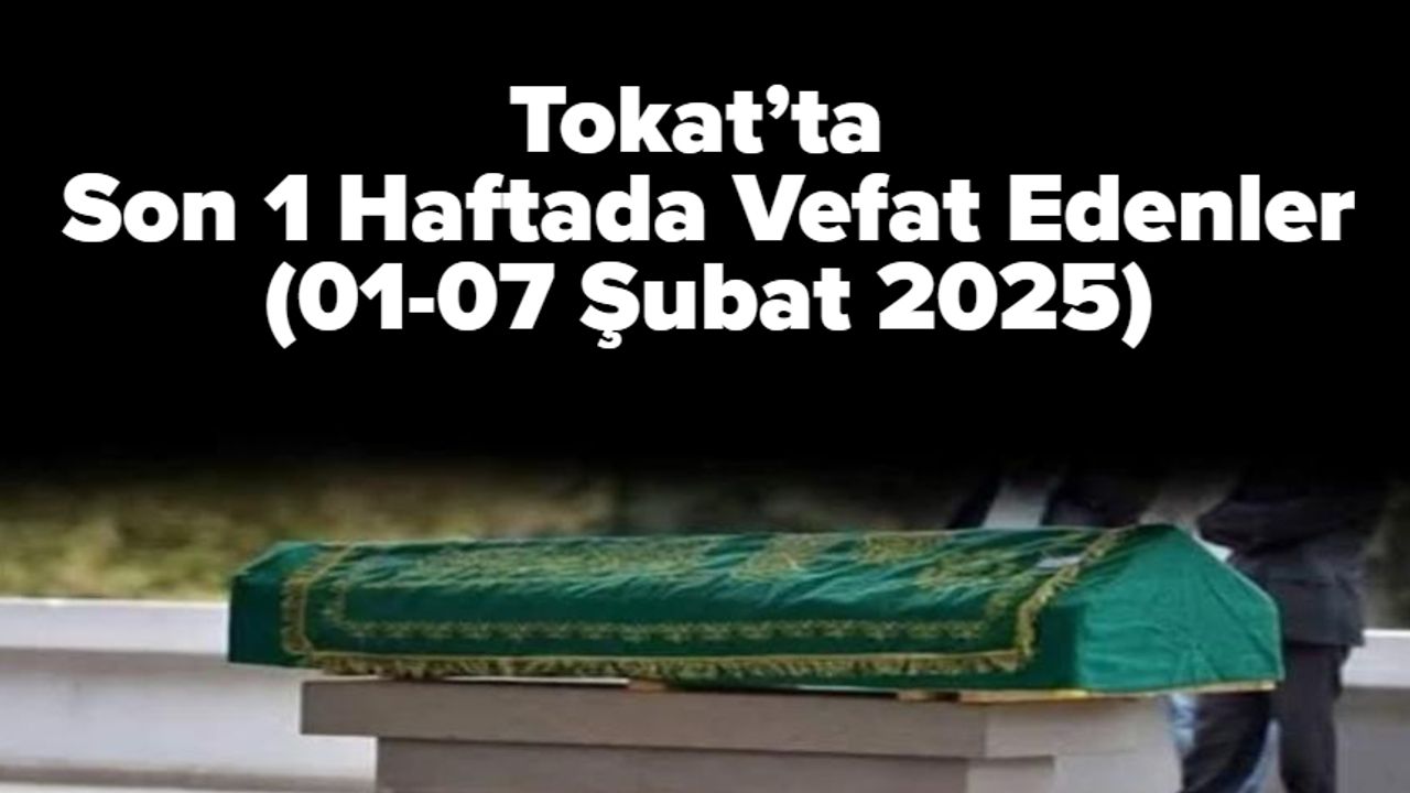Tokat Belediyesi'nin 01-07 Şubat 2025 tarihleri arasındaki vefat ve cenaze duyurularını sizlerle paylaşıyoruz. Tokat Hürsöz olarak, vefat edenlere Allah’tan rahmet, ailelerine ve sevenlerine başsağlığı ve sabır diliyoruz. İlanlar, Tokat Belediyesi’nin internet sitesinden alınmıştır. Peki, 01-07 Şubat 2025 tarihlerinde Tokat’ta kimler vefat etti? İşte detaylar...