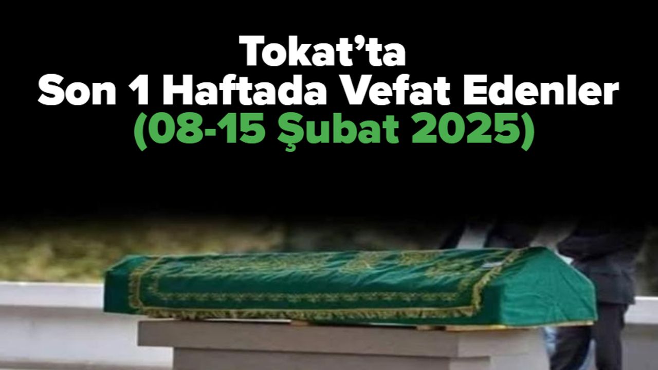 Tokat Belediyesi'nin 08-15 Şubat 2025 tarihleri arasındaki vefat ve cenaze duyurularını sizlerle paylaşıyoruz. Tokat Hürsöz olarak, vefat edenlere Allah’tan rahmet, ailelerine ve sevenlerine başsağlığı ve sabır diliyoruz. İlanlar, Tokat Belediyesi’nin internet sitesinden alınmıştır. Peki, 08-15 Şubat 2025 tarihlerinde Tokat’ta kimler vefat etti? İşte detaylar...