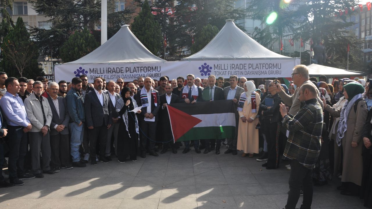 İsrail, Filistin’e yönelik yaptığı saldırılar devam ederken Tokat’ta ki STK’lar bir araya gelerek Milli İrade Platformu çatısı altında Tokat Filistin Dayanışma Grubunu kurdu. Cumhuriyet Meydanı’nda kurulan stantta bir araya geldi. Basın açıklaması yapıldığı programa Belediye Başkanı Eyüp Eroğlu, İl Müftüsü Esat Yapıcı, Ak Parti, MHP, Yeniden Refah Partisi, Saadet Partisi ve HÜDA Partisi temsilcileri, STK ve ilimizde okuyan Filistinli öğrenciler katıldı.