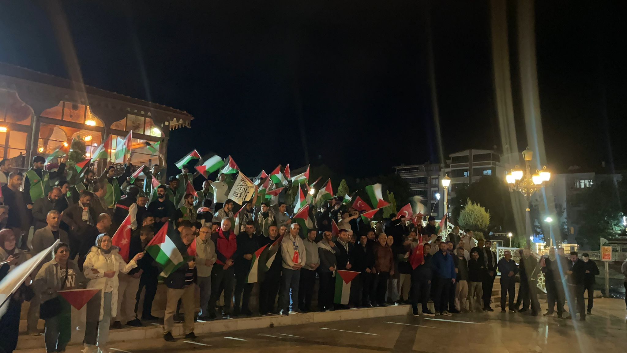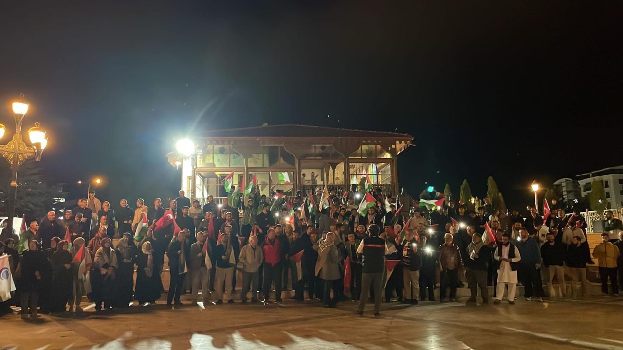 Eylemde “Katil İsrail Filistin’den Defol”, “Sumud Filosu Onurumuzdur” ve “Filistin Yalnız Değildir” sloganları atıldı. Katılımcılar, Filistin’e yönelik saldırıların bir an önce son bulması gerektiğini vurguladı.