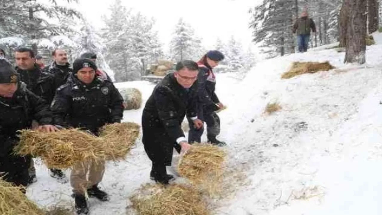 Tokat'ta yoğun kar yağışı nedeniyle yiyecek bulmakta zorlanan yaban hayvanlarına yem bırakıldı.