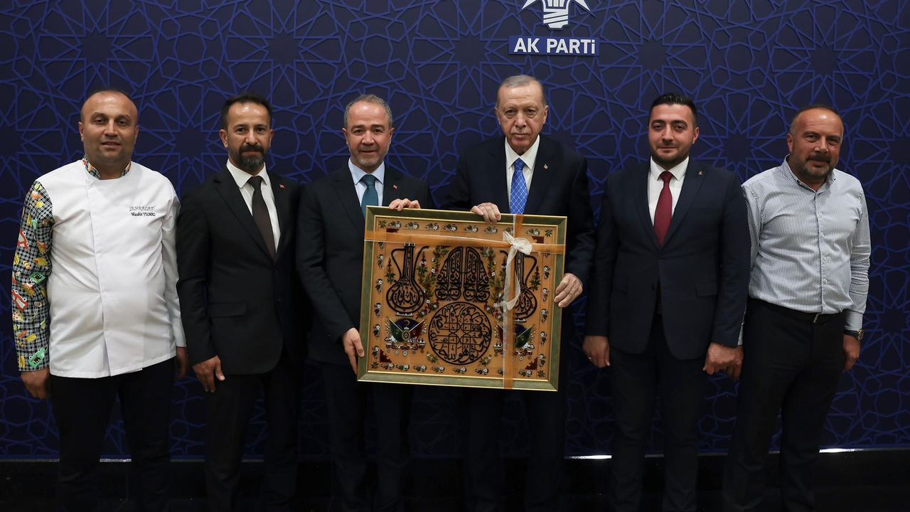AK Parti Tokat İl Başkanı Adem Dizer, Parti Merkez Karar ve Yönetim Kurulu (MYK) Toplantısı'nın hemen ardından gerçekleştirdiği ziyarette, Cumhurbaşkanı ve Genel Başkan Recep Tayyip Erdoğan'a anlamlı bir hediye sundu. Dizer, 1889-1899 yılları arasında yapılmış orijinal bir eserden yola çıkılarak hazırlanan nadir bir Cam Altı Süsleme tablosunun replikasını takdim etti.