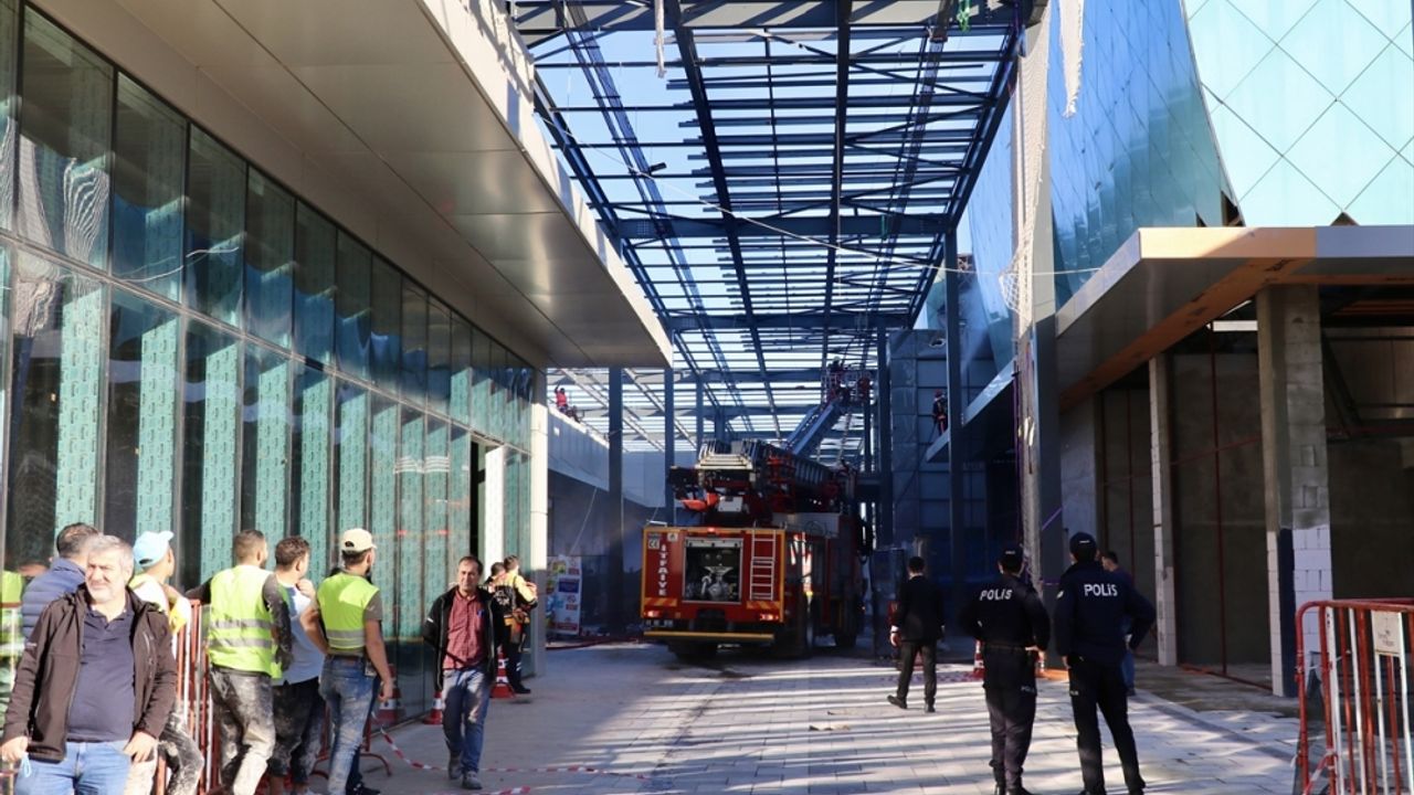 Ortahisar ilçesine bağlı Kalkınma Mahallesi'nde ek bina çalışmalarının da devam ettiği alışveriş merkezinin dış cephesinde yangın çıktı.