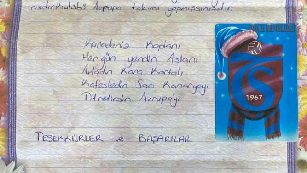 Ceylan, mektubunu, Cumhuriyet'in 100'üncü yılında Trabzonspor Kulübüne verilmesi için PTT'ye teslim etti.