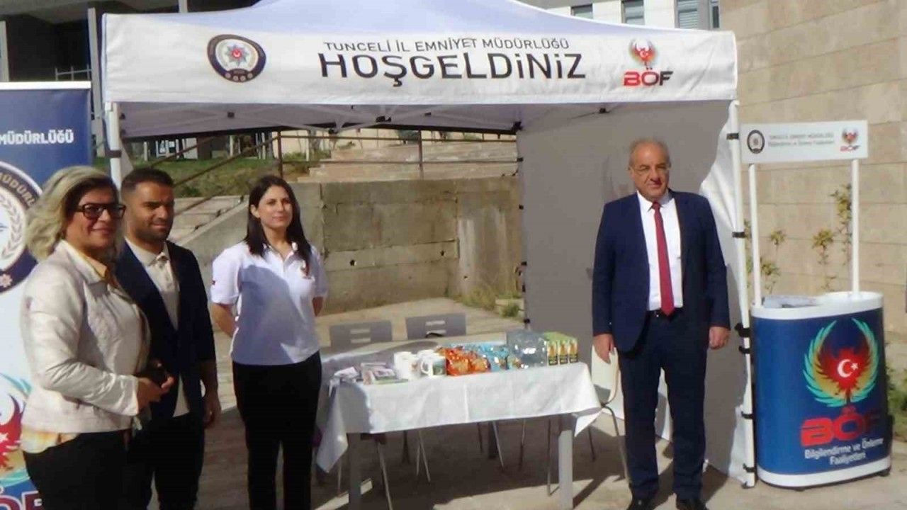 Tunceli Emniyet Müdürlüğü, Munzur Üniversitesinde kurduğu stantlarda öğrencilere yönelik bilgilendirme faaliyetlerinde bulunuyor.