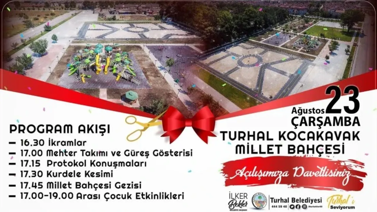 Turhal Belediyesi'nin, şehir sakinlerinin doğayla iç içe vakit geçirebileceği alanları artırma hedefi doğrultusunda yapılan çalışma aratarak devam ediyor. 2022 yılında hizmete alınan Turhal’ın ilk Millet Bahçesi Olan Kocakavak Millet Bahçesinin 2.etabında çalışmalarda sona gelindi. 23 Ağustos 2023 tarihinde saat 17.00'da il protokolünün katılımıyla gerçekleşecek olan açılışa tüm vatandaşlar davet edildi.