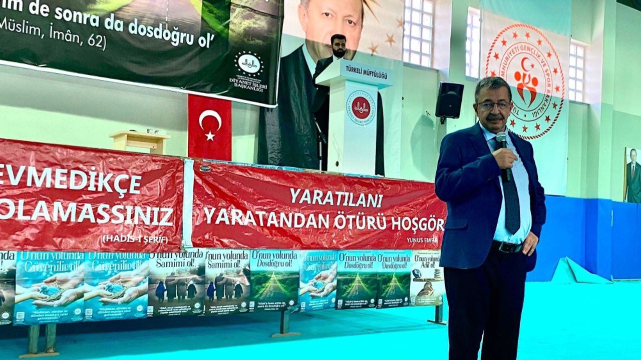 Mevlid-i Nebi ve Camiler ve Din Görevlileri haftaları dolayısıyla İlçe Müftülüğü tarafından Türkeli Spor Salonu'nda düzenlenen konferansa konuşmacı olarak eğitimci yazar Hayati İnanç katıldı.