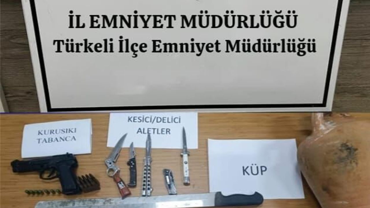 Ekiplerce ev ve araçtaki aramada bir miktar uyuşturucu madde ile 6 bıçak ele geçirildi.
