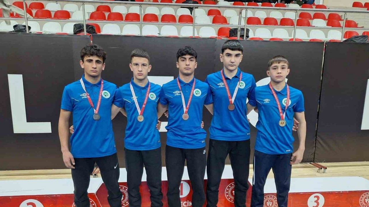 Bilecik’te düzenlenen Okul Sporları B Grup Şampiyonası, 300 sporcunun katılımıyla gerçekleştirildi. Büyük bir heyecana sahne olan organizasyona katılan Düzce Belediyesi Güreş İhtisas Kulübü sporcuları bireysel dereceler elde etmelerinin yanında, takım halinde birincilik kazanarak büyük bir başarıya imza attı. Şampiyonada, kulüp sporcularından 48 kg’da Mert Halil İşler ve 52 kg’da Ensar Demirbayraklı birinci olarak altın madalya kazandı. 55 kg’da Onur Gezer ikinci, 60 kg’da Kağan Çaldıran üçüncü olurken, 65 kg’da Muhammed Taha Zurnacı da üçüncülük elde etti.